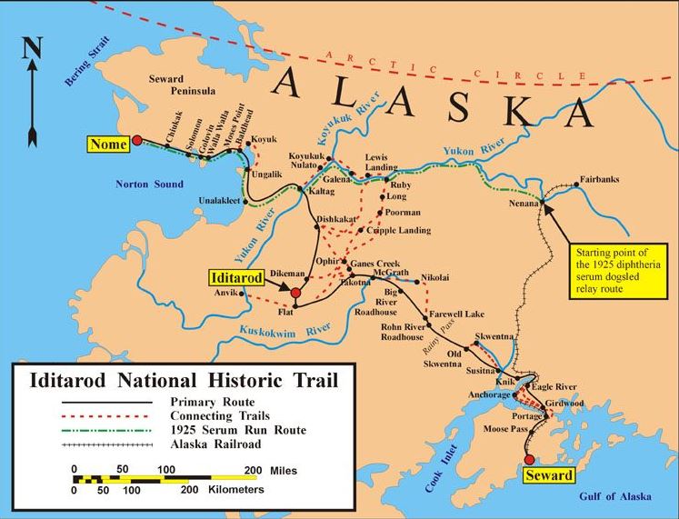 In the meantime a smaller shipment of serum had been found which could be transported to Nenana by train. From there, the only solution was to organise a relay of dog sled teams to take the serum the remaining 674 miles from Nenana to Nome.